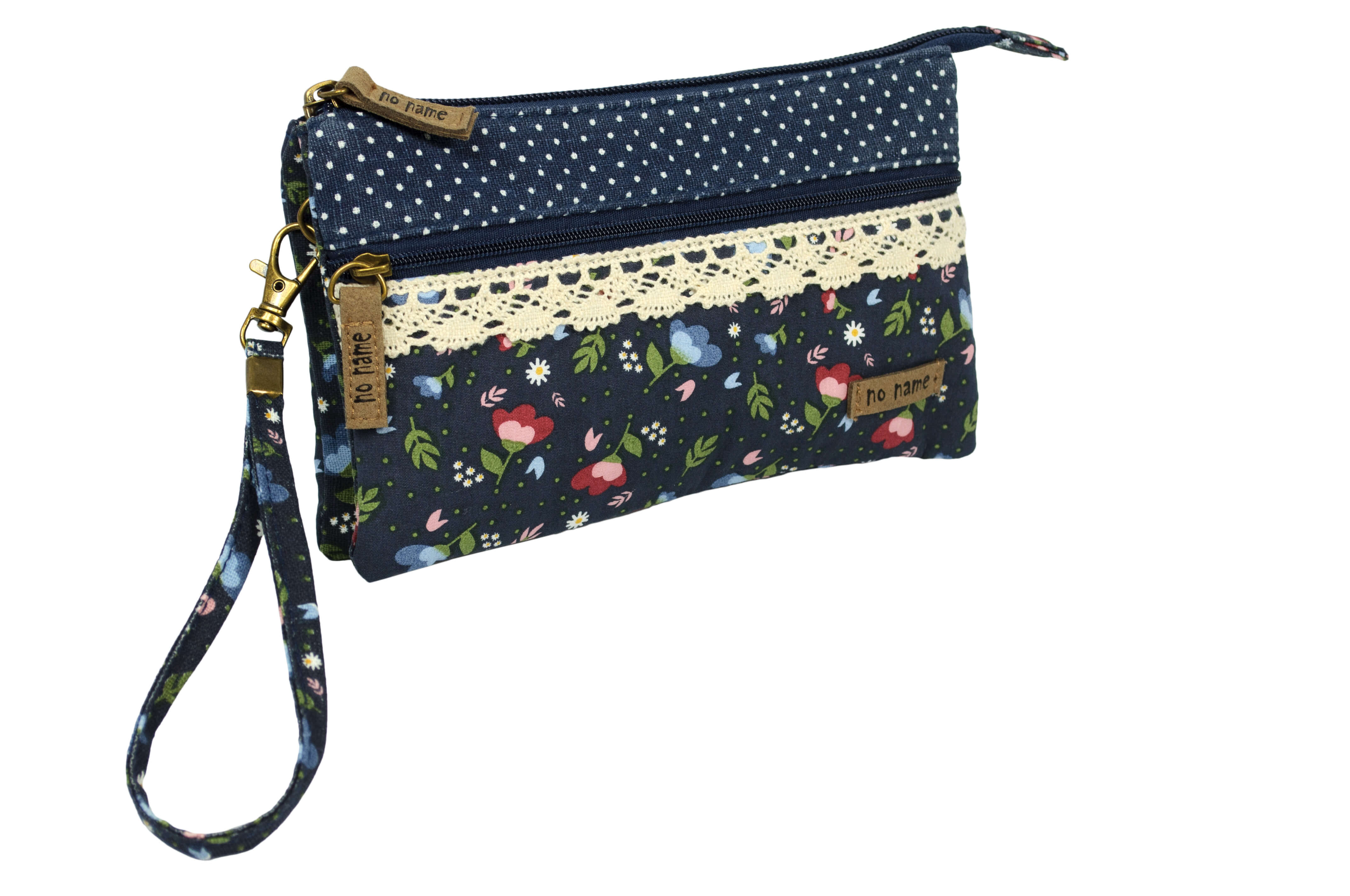 Die Handgelenktaschen von no name zeichnen sich durch ein süsses, verspieltes Patchwork Design aus. Sie eignen sich prima, um kleine Gegenstände wie zum Beispiel Schlüssel, Brille, Handy oder Geldbeutel sicher zu verstauen. Durch die abnehmbare Schlaufe lassen sie sich bequem am Handgelenk tragen. Alternativ kann man sie auch wie die bekannte Clutch einfach in der Hand tragen. Verschließen lässt sie sich sicher durch einen Reißverschluß.