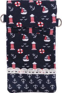 Patchwork Handytasche Umhängetasche (Navy 022) - diese modische Handytasche die auch als Handytasche zum Umhängen benutzt werden kann macht optisch und funktional einiges her. Die Handytasche verfügt über eine Klappe wodurch das Handy nicht einfach herausrutschen kann, zusätzlich kann man mit Hilfe der beiligenden Schnüre sich die Handytasche auch um den Hals hängen. Die Goldline Handytaschen zum Umhängen gibt es in vielen verschiedenen Designs, entdecken Sie die Auswahl direkt im Shop. Die Taschen haben eine Universalgröße und passen so für die meisten Handys. Die Tasche besteht aus 100% Baumwolle und kann so auch problemlos in der Waschmaschine gewaschen werden.