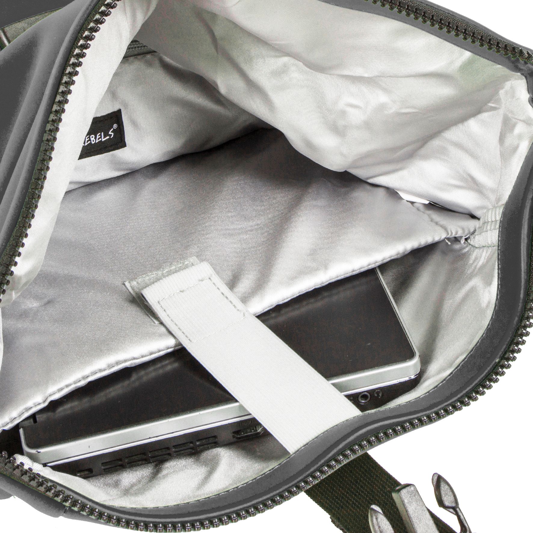 Diese trendige und wasserdichte Rückentasche sieht nicht nur stylisch aus, sondern bietet auch jede Menge Stauraum. Der leichte Rucksack besitzt einen gepolsterten Rücken und gepolsterte, verstellbare Schultergurte, was für einen hohen Tragekomfort sorgt. Das große Hauptfach kann durch ein Rolltop verkleinert oder um bis zu 10 cm vergrößert werden und wird mit einem stabilen Reißverschlus und einem verstellbaren Klickverschluß gesichert. Im Hauptfach befindet sich außerdem ein zusätzliches Reißverschlussfach und ein gefüttertes Fach in welchem man einen Laptop oder ein Tablet verstauen kann (36 x 27 cm). Ein kleines Fach an der Vorderseite, welches ebenfalls durch einen Reißverschluß geschlossen wird ist besonders praktische für kleinere Gegenstände, welche man schnell zur Hand haben möchte. Ein stabiler Tragegriff sorgt dafür, dass man den Rucksack auch in der Hand tragen, oder an einem Haken aufhängen kann.